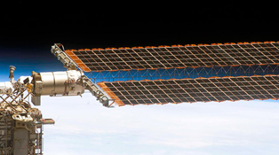 The technology is inspired by the Solar Array Wings of the International Space Station , which are large deployable solar arrays with a total length of approximately 73 meters and have been installed since the year 2000.